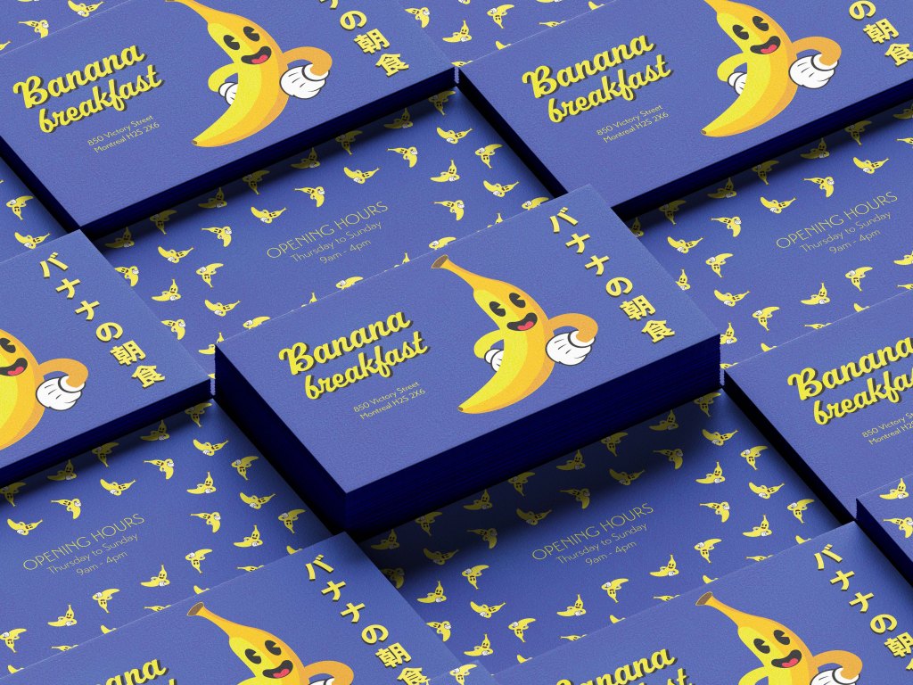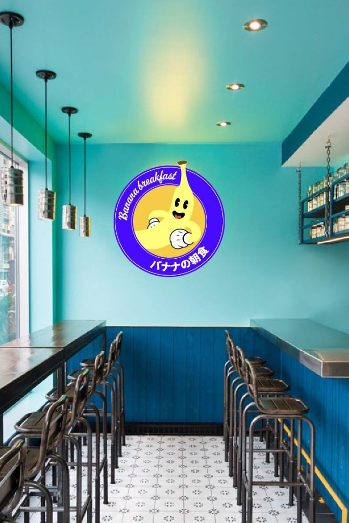 Banana breakfast is an imaginary restaurant concept. It is located in Montréal, in the Mile-end neighborhood. This breakfast place offers unique fusion cuisine with Japanese and North-American influences. It serves various dishes such as American pancakes, authentical Japanese Omelet Omurices, Asian bubble waffles, and its specialty the banana cake. The restaurant has an urban and retro aesthetic.