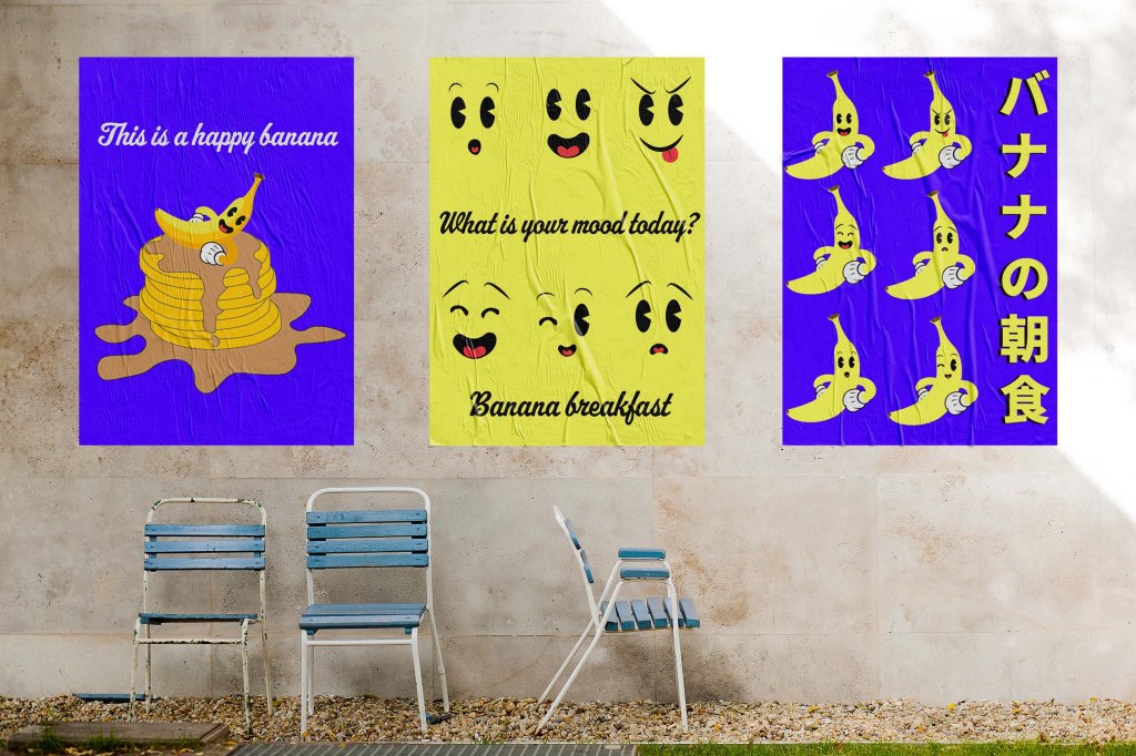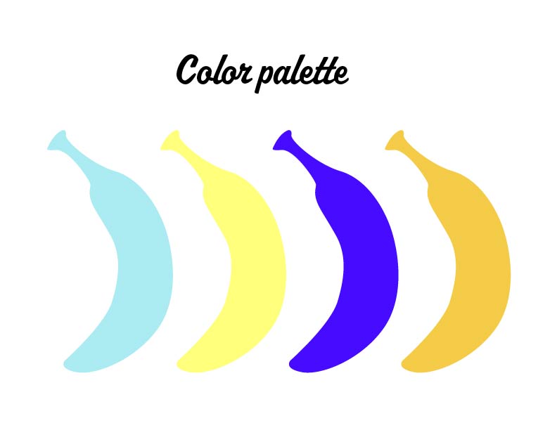 The brand identity mostly relies on its mascot logo: a ‘humanized’ banana that takes some influence from American vintage cartoon characters in the 50s. The mascot also takes some Japanese kawaii traits (adorable in Japanese). I wanted to create a ‘pop’ character that is hybrid and represents the great cultural diversity of Montréal.