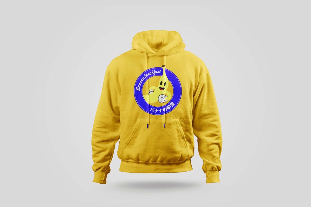 Like many restaurants, Banana breakfast also sells branded items like hoodies that feature the banana mascot character.