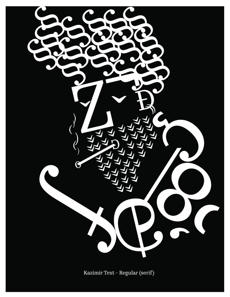 This is a type tool project I did for the Illustrator class. We had to create faces using only typographic characters (letters, numbers, punctuation, glyphs). We could not use shapes or the pen tool. This was a great challenge to draw with serif and sans serif fonts. I have also enjoyed using Arabic writing to vary my style of illustration.